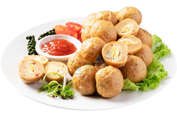 Thành phần nguyên liệu: Thịt cá, trứng cút, đường, muối, chất điều vị, tiêu…