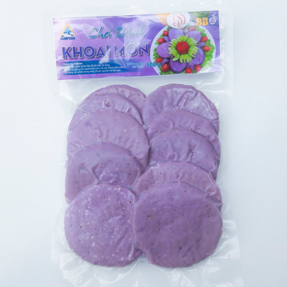 Chả bánh khoai môn Anfish được chế biến từ nguồn nguyên liệu tươi, ngon, giàu chất dinh dưỡng. Chả có mùi thơm của khoai môn, mang hương vị lạ, đặc sắc, màu nước cốt lá cẩm & độ giòn dai tự nhiên từ thịt cá basa tươi ngon, cung cấp nhiều dưỡng chất cho người lớn & trẻ em.