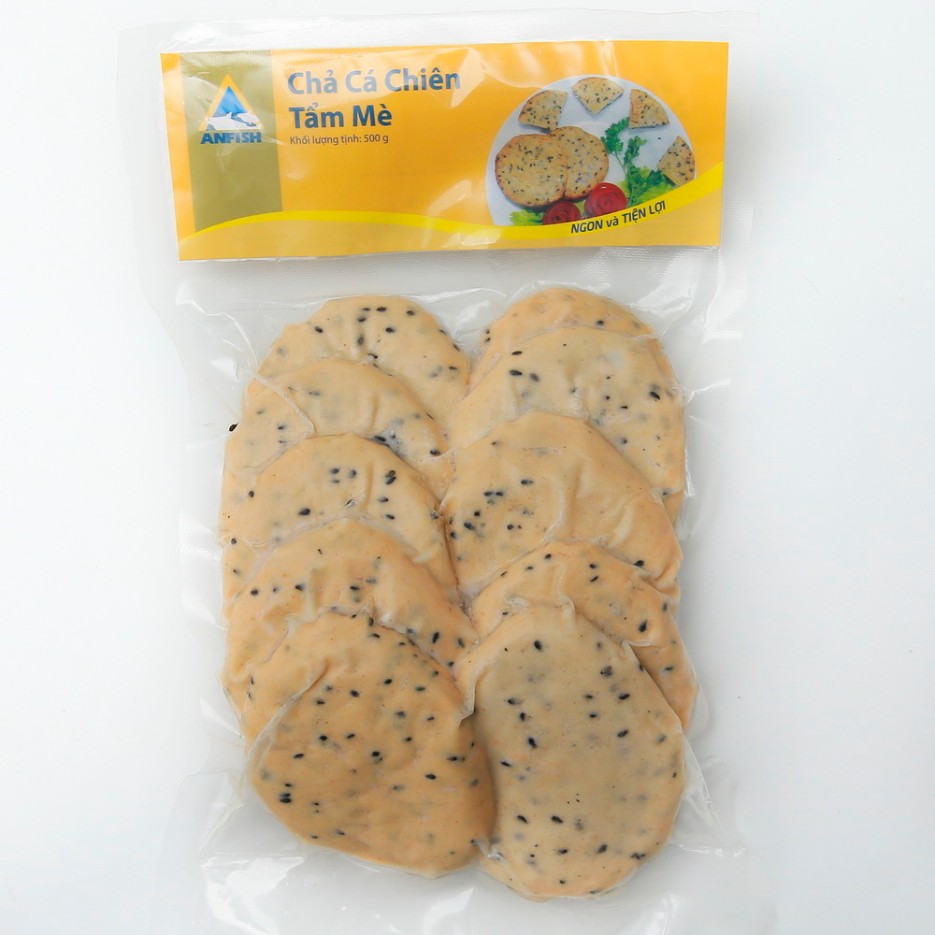 Từng miếng chả cá vừa giòn lại có vị bùi bùi thơm ngậy của mè, quyện với vị cay của tương ớt rất thích hợp để ăn chơi hay chiêu đãi cả nhà dịp cuối tuần.