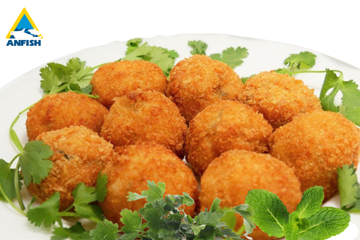 Đeo găng tay, thoa chút dầu ăn lên tay, dùng thìa lấy một thìa cá đặt lên lòng bàn tay, ấn dẹt ra, cho nhân sốt mayonnaise vào giữa, rồi vo tròn lại, lăn qua bột chiên, trứng gà và cuối cùng là bột chiên xù.