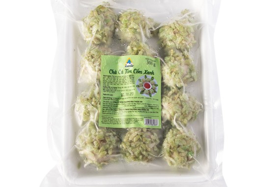 Tính chất của sản phẩm: màu cốm xanh bao phủ nhân thịt cá bên trong. Cùng cấu trúc: dai dai, giòn giòn mùi vị đặc trưng hấp dẫn từ sản phẩm.